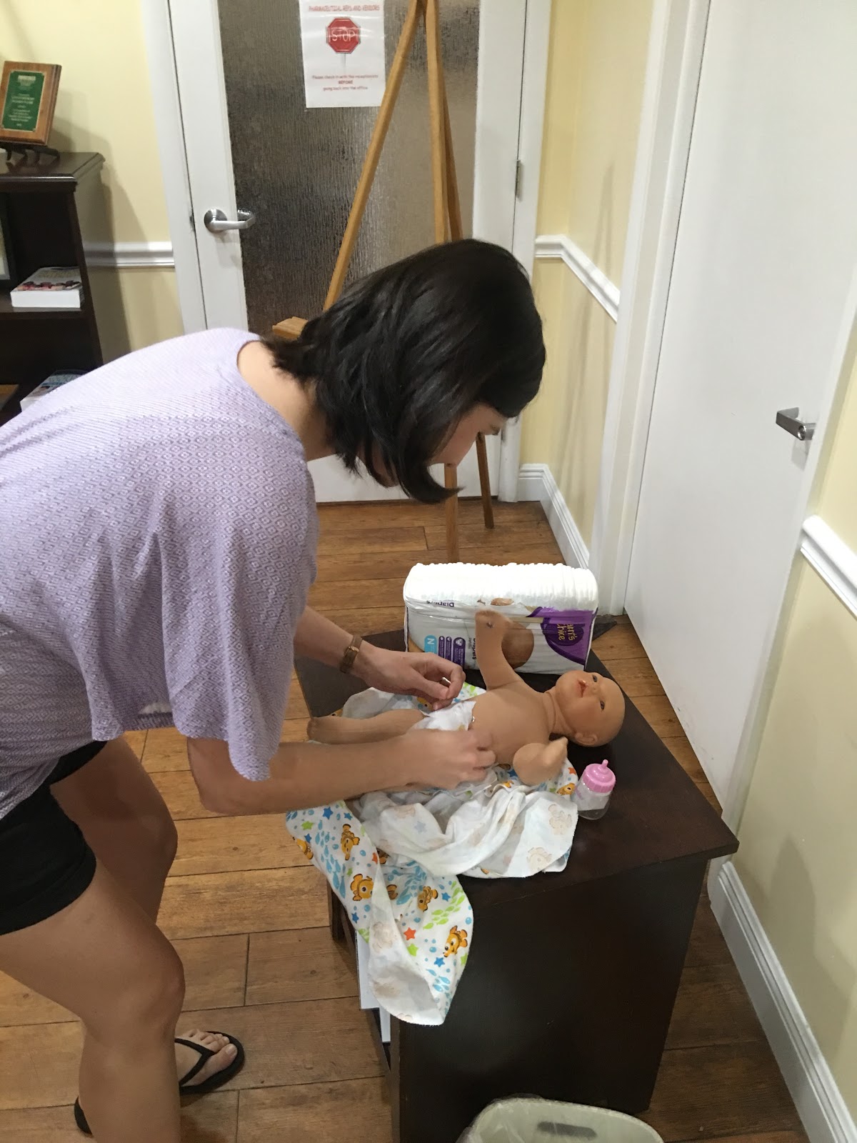 Daddy changing her diaper!
