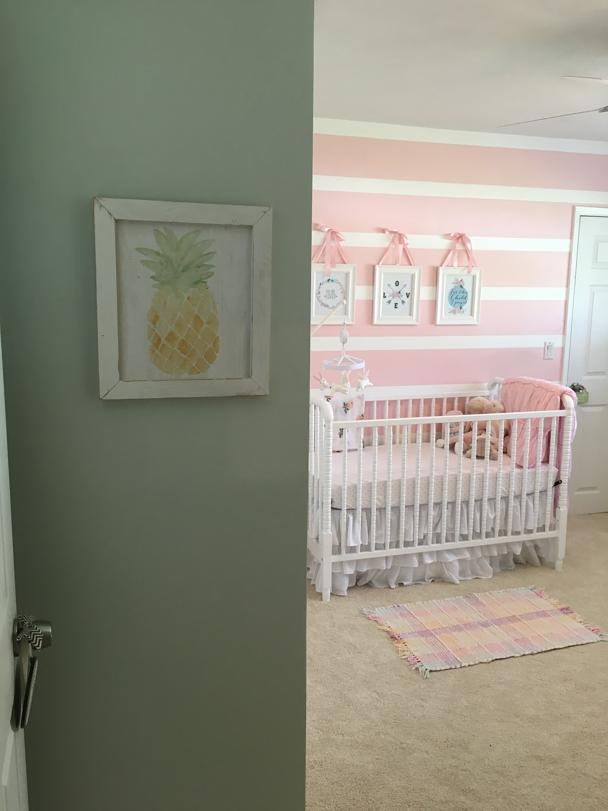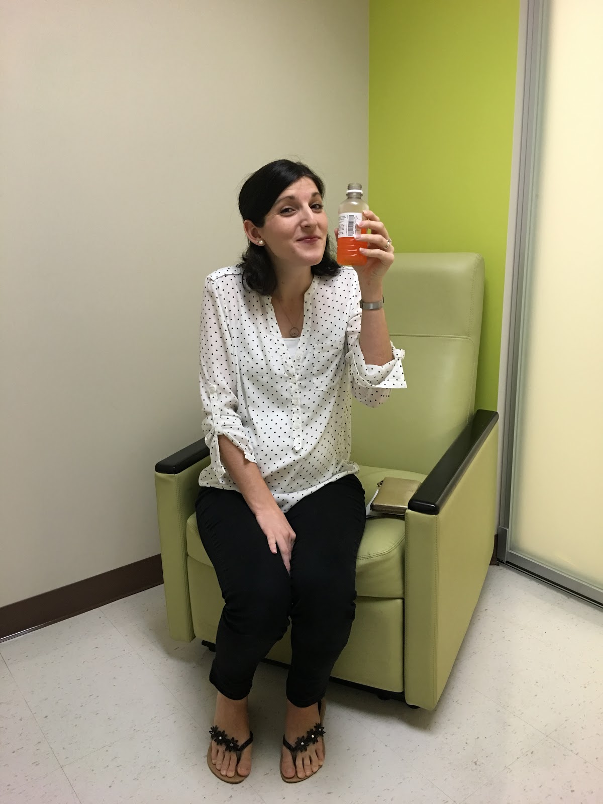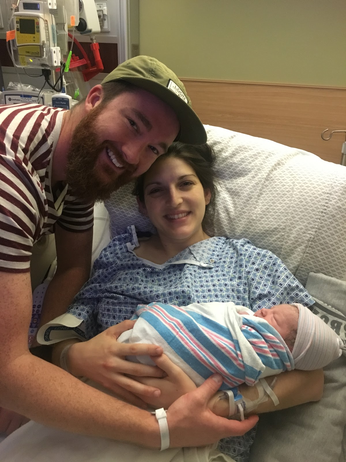 Thankfully our bags were ready to go – so at about 2:00 am we headed down to Morton Plant. I ate a banana in the car because I knew I wouldn’t be able to eat once I got there. I was admitted at around 2:20ish. Tests were run and within minutes they confirmed that YES my water had broken!!!! I knew it! So at that point we weren’t going back home – we were gonna have our baby girl!! It was a crazy feeling. I started getting a little bit anxious but it didn’t last long, thankfully. Once I was all checked in, they moved us to a labor and delivery room where I was hooked up on monitors to show the progress of my contractions and little one’s heart rate. Kyle had a rather nice couch bed to sleep on – although neither of us did much sleeping. I was having contractions, but they weren’t progressing as quickly as they wanted so they put me on Pitocin which speeds up contractions. Since my water had broken, it is typical that they want you to deliver the baby within 24 hours to prevent infection – so that is why I was on Pitocin. Labor was going rather smoothly. I could feel contractions every five minutes or so and they really weren’t too bad. By 7:30 in the morning, the midwife on call came by to check and see if I had made any progress – by that time I was 3 centimeters dilated. It was encouraging to hear! I continued laboring and used some techniques I learned about in our birthing class – like using the birthing ball and standing up/walking around during contractions. I didn’t have an epidural yet, so I was able to eat liquids. I had a delicious Italian ice and some apple juice. It was amazing!