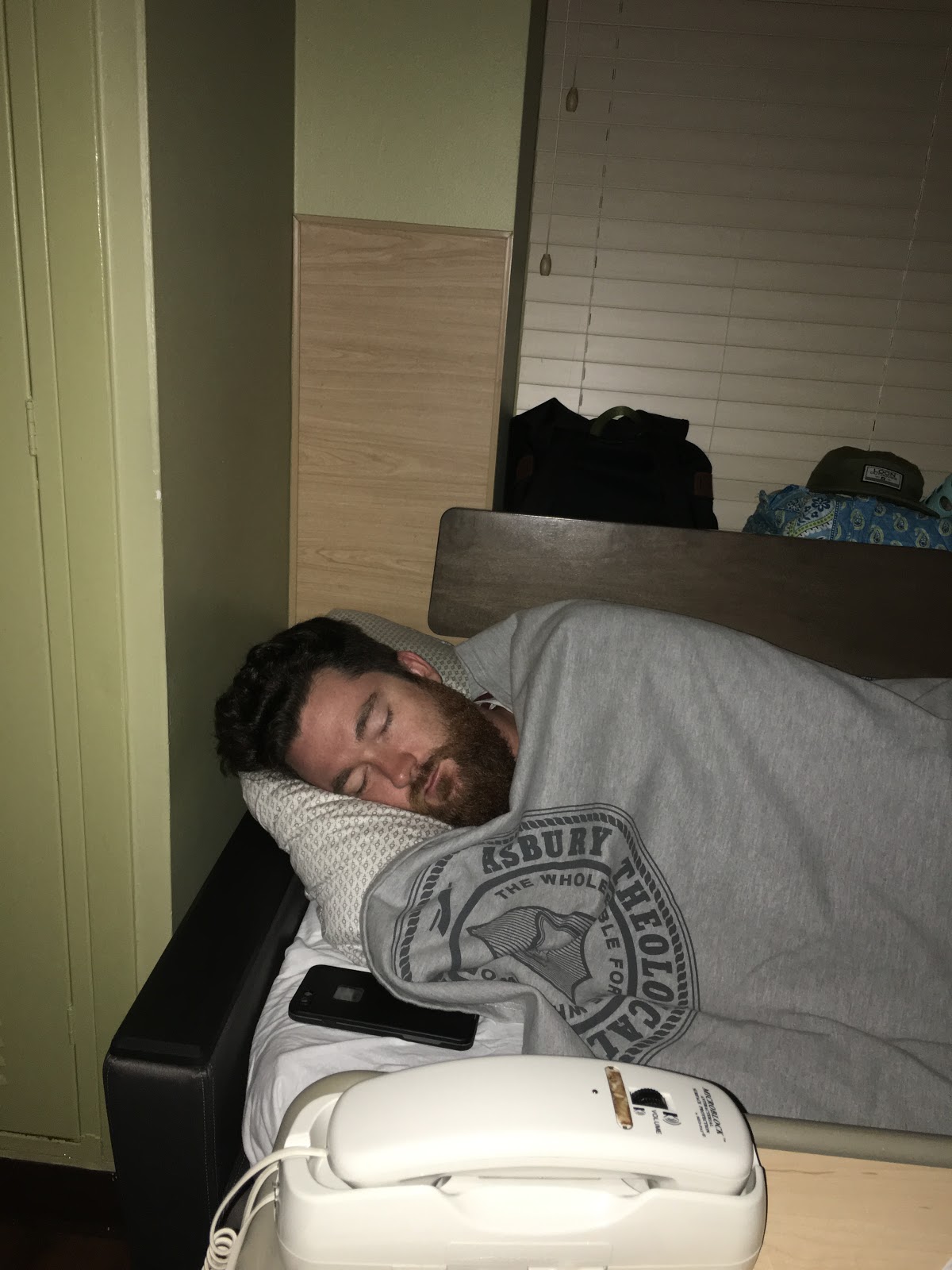 Kyle trying to catch some zzz’s in the “Comfy” bed