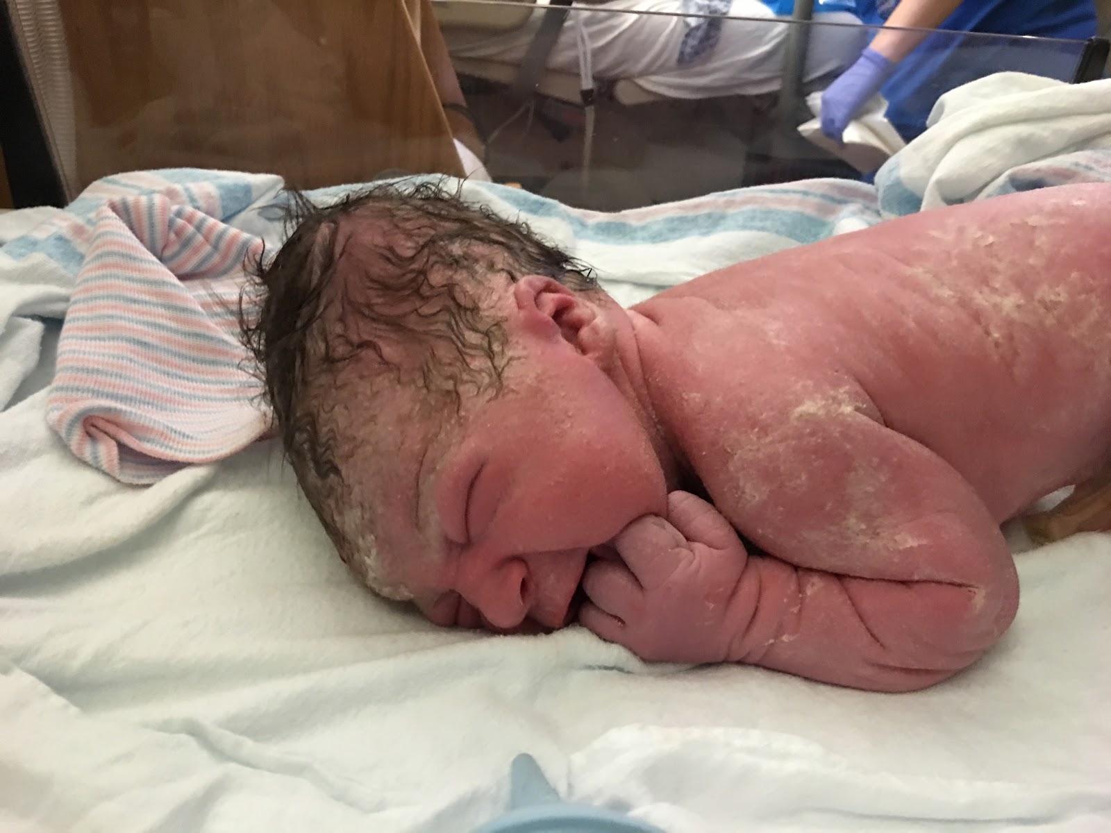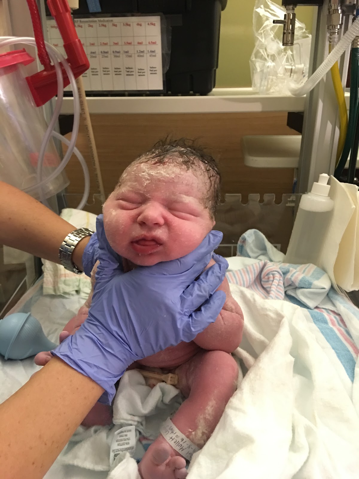 It’s amazing how their little heads squish to make their entrance into the world. Don’t worry, she has a beautiful head – it’s not cone shaped! haha!